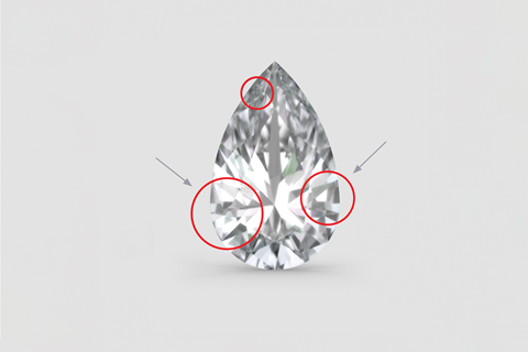 净度是指钻石内“内含物”的含量。这些内含物是钻石被创造出来的时候在其深处自然形成的特征,例如矿物纹、未结晶碳和微小裂纹。尽管它们通常肉眼不可见,但它们可能影响光线的反射和折射方式。宝石专家会在 10 倍放大率下对钻石进行检查,然后将它们分为 F(无瑕疵)到 I(有内含物)的净度等级。净度等级还可以指示内含物是靠近宝石的中心还是接近其腰部或外缘。