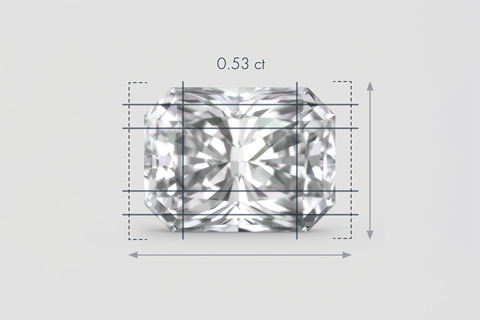 克拉是一个重量单位,而不是尺寸单位。1 克拉等于 200 毫克。这个术语源自“carob”(角豆)一词。在古代,人们曾使用角豆种子作为钻石重量的基准。由于较大的钻石是罕见的,因此,一颗大钻石比几颗加在一起等重的小钻石更有价值。假设所有其他品质都相同,一颗 1 克拉钻石的价值通常要超过两颗半克拉钻石的总价值。